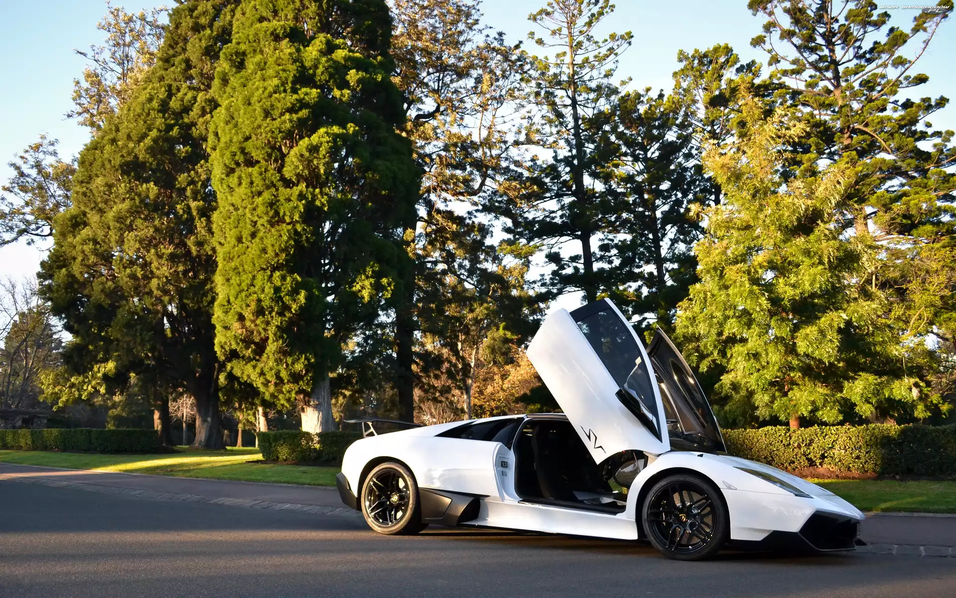 Samochód: Murcielago, Białe, Park, Ulica, Lamborgini, LP670-4SV