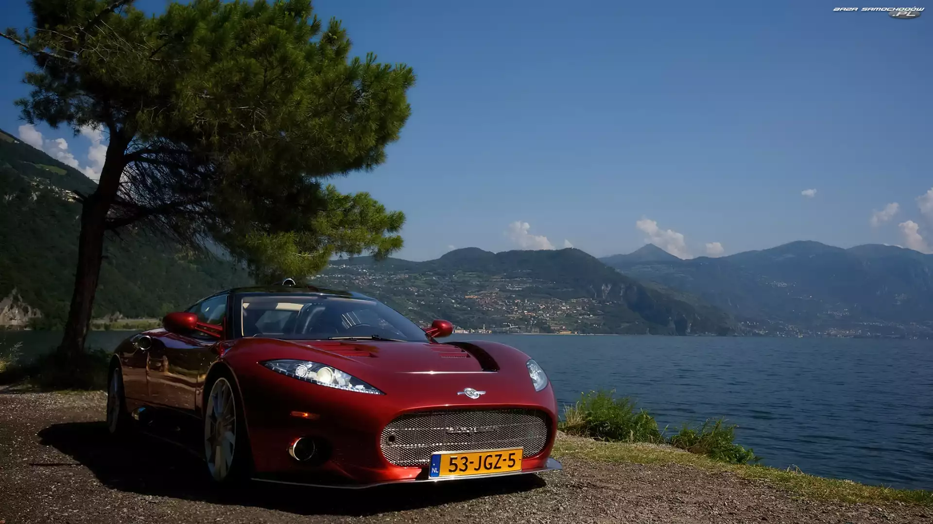 Spyker, C8, Drzewo, Morze- Zdjęcia samochodów