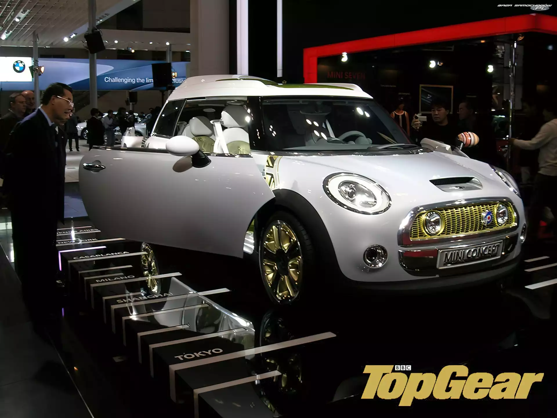 Peugeot SR1, Wystawa Car, Peugeot RC, Concept Clubman Przód, Mazda Ryuga Maska, Jaguar C-X16, Reflektory Tuning, Mini Clubman Brembo, Peugeot SR1, Zaciski Surfing, Mini Clubman Prototyp, Audi Q5 Lamborghini Estoque Concept Grill, Citroen Revolte Prototyp, Kia Kapelusze, Mężczyzna, Mini, Samochód, Clubman Bugatti Veyron Concept