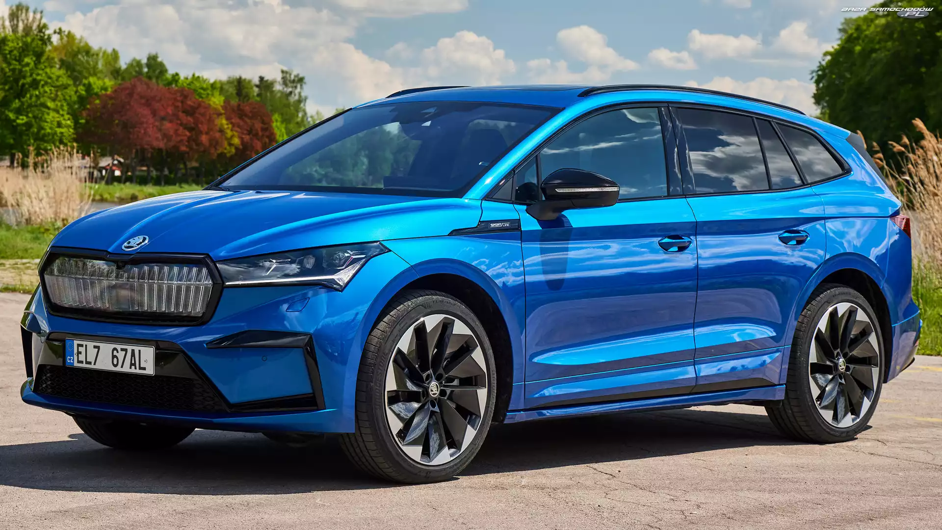 Niebieska, Skoda Enyaq iV Sportline- Zdjęcia samochodów